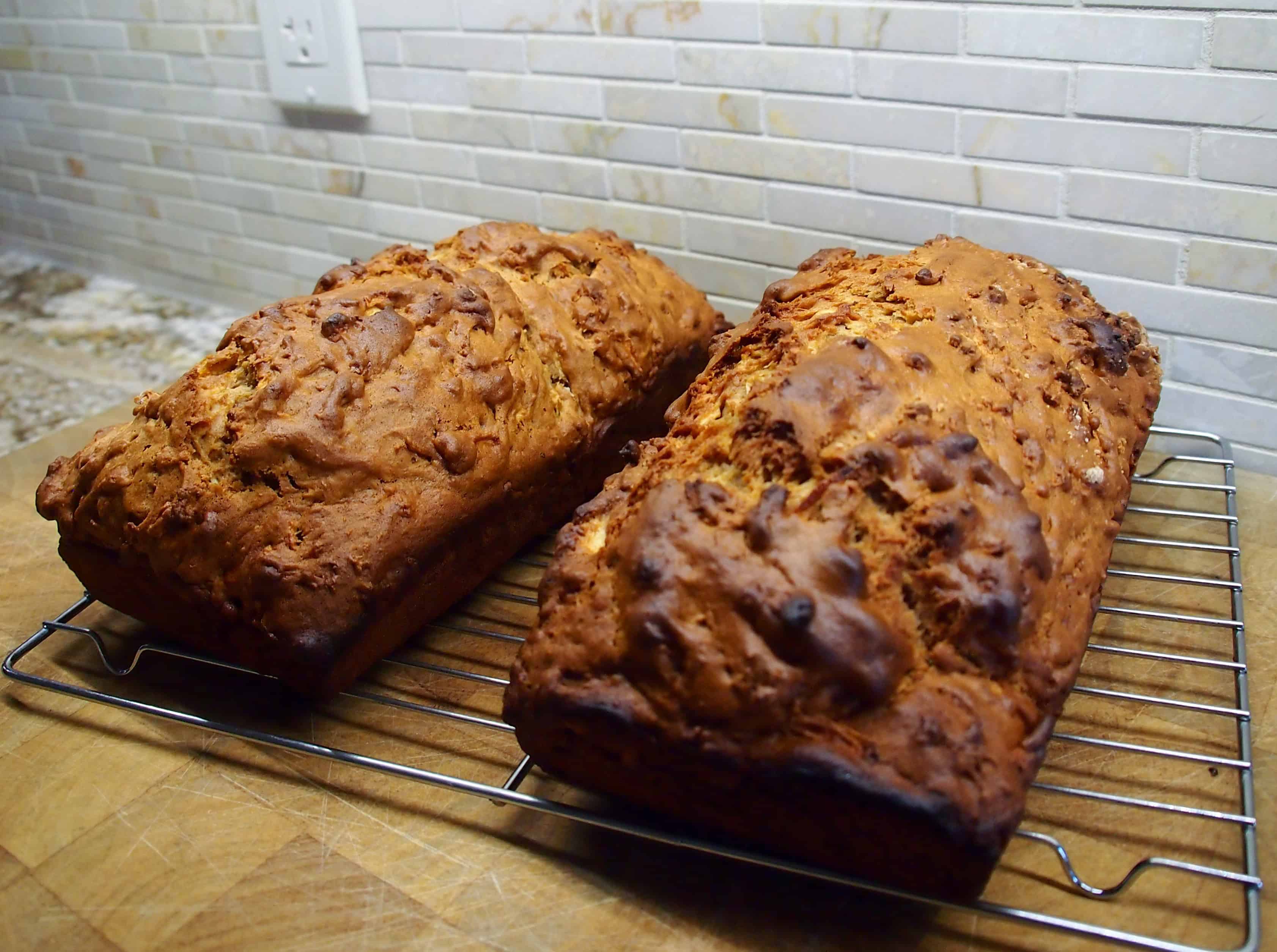 Spray a loaf pan (8.5 inch by 4.5 inch or 9 inch by 5 inch) with non-stick cooking spray. Spread batter in prepared pan. Bake for 40 – 45 minutes, until a wooden toothpick inserted in the center of the loaf comes out clean. Cool in pan on wire rack for 10 or 15 minutes and then remove from pan to cool completely. Store in the refrigerator wrapped in foil, plastic wrap or a recycled bread bag. It’s better the next day.