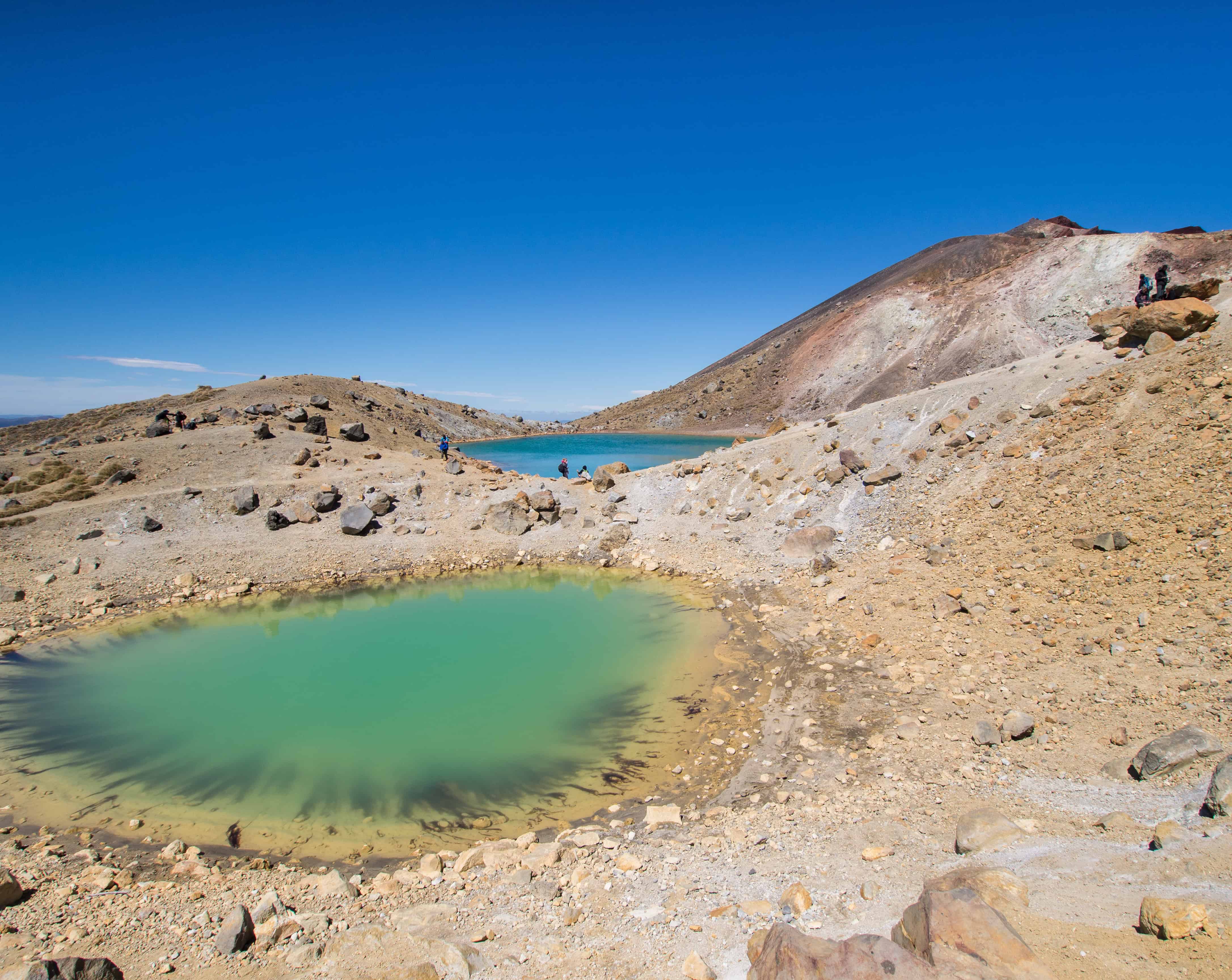 There isn’t much vegetation along the Tongariro Alpine Crossing, nor is there much wildlife. So the main attraction is the geology: three volcanoes, various craters (including crater lakes), old lava and lahar flows and steaming fumaroles define the landscape.