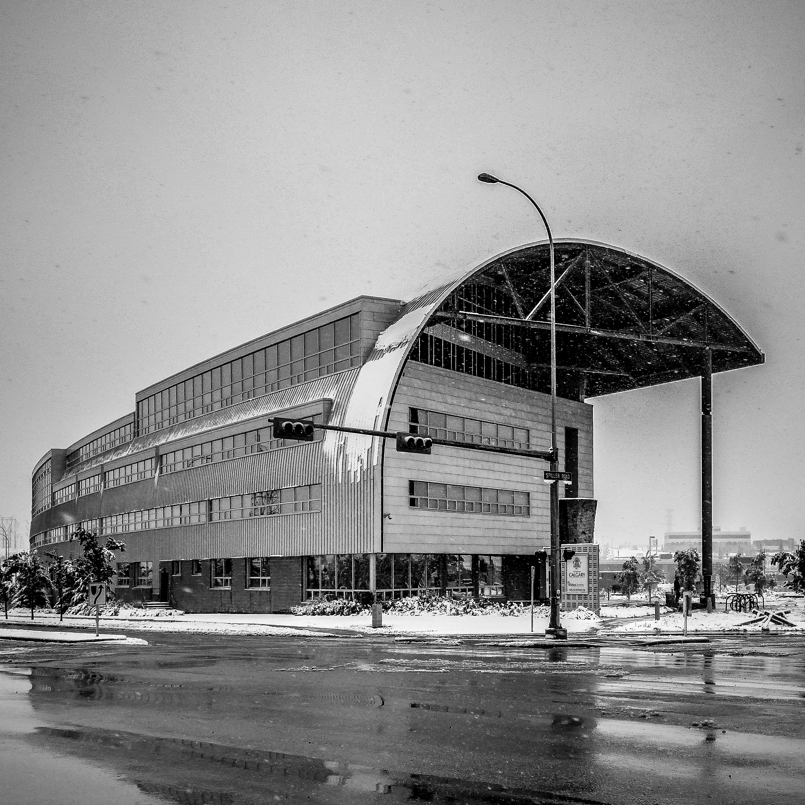2. September Snow – The morning of September 10th we woke to about 30 cm (12 inches) of heavy snow blanketing Calgary. Thousands of homes were without power due to lines downed by broken tree branches. As of today, 10 million kg (11,000 tons) of tree debris has been hauled to a central point for chipping and there are still many areas waiting for city crews to haul away piles of branches. September 10th was also the first day of Beakerhead 2014. As a member of the Beakerhead photography team, I headed to some of the indoor venues including the Calgary Water Centre. Along the way, black and white was an ideal choice for photographing the continuing drift of snow flakes, the blanket of snow clinging to the curved roof and the mood of the day.