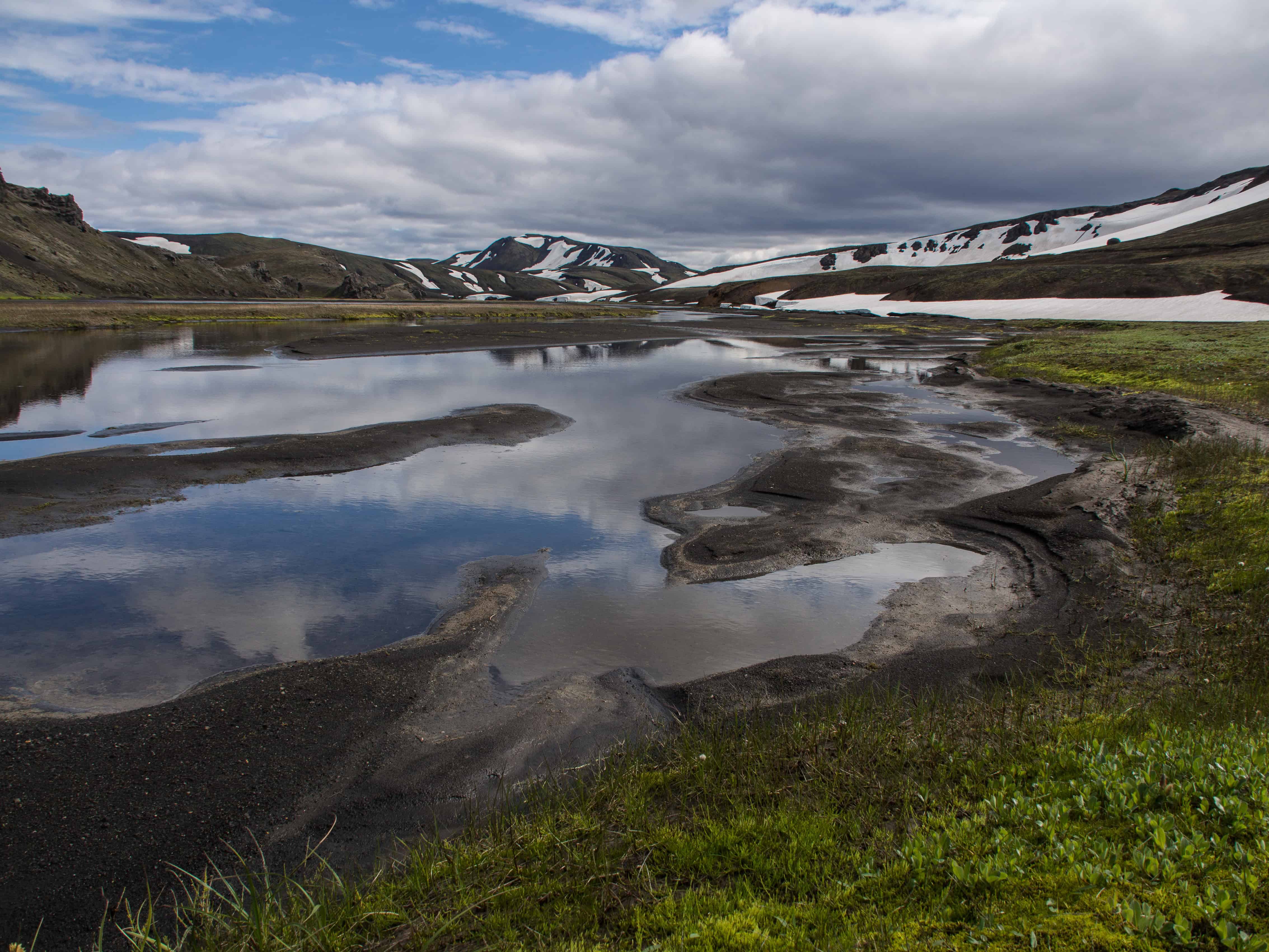 The day we hiked from the Obsidian Skerry down to Landmannalaugar, we traveled about 85 km from our hotel to the trail head. A fair portion of that was along F225 (also referred to as Landmannaleið). Some roads in the area were still closed due to the spring thaw, but our driver/photo guide contacted the appropriate authorities to work out an approved alternate driving route that eventually got us to the trailhead. We made a couple of photo stops before our hike and two more afterwards.